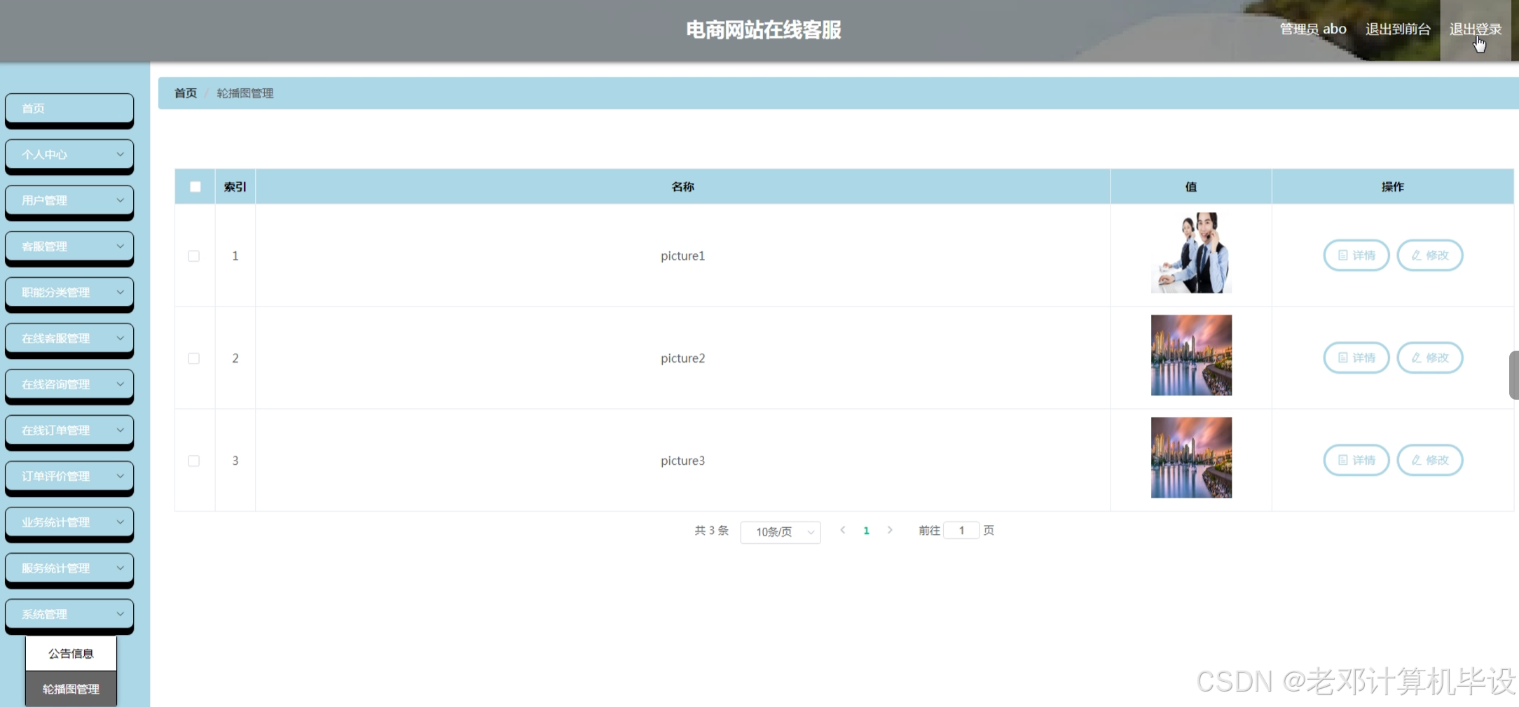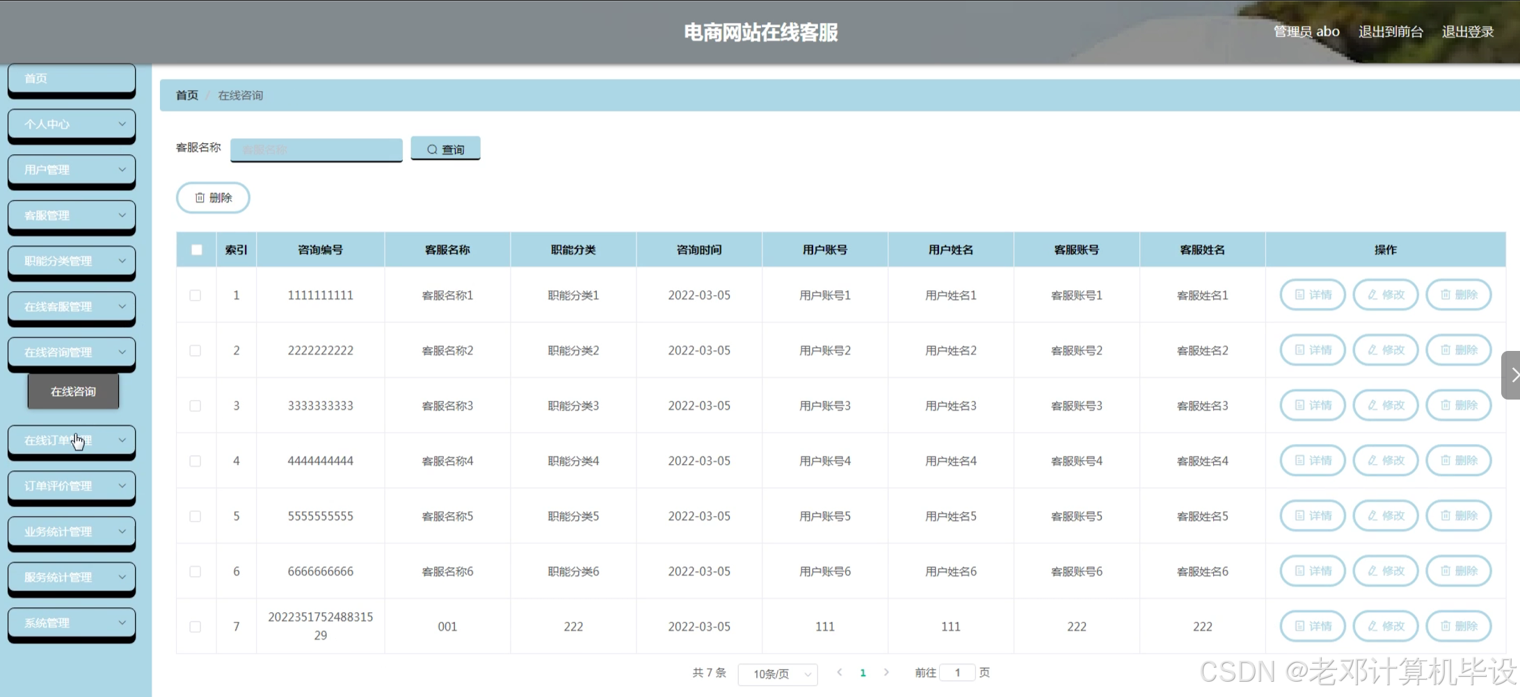 - 业务统计:收集和分析用户行为数据,包括咨询量、订单量、满意度等,为运营决策提供参考。