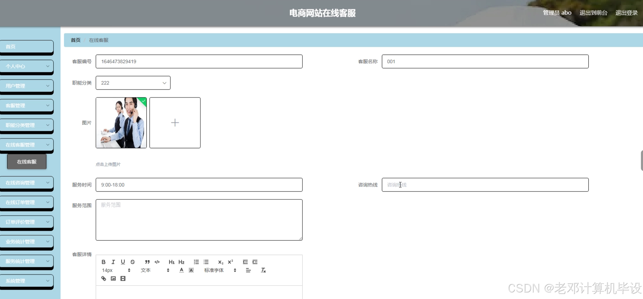 随着互联网技术的快速发展,电子商务已经成为人们日常生活中不可或缺的一部分。随着电商行业的迅速崛起,越来越多的消费者选择在网上购物。然而,在线购物过程中,消费者常常面临着各种问题和疑虑,需要及时得到解答和帮助。传统的客服方式往往存在响应速度慢、服务质量不稳定等问题,难以满足消费者的需求。因此,开发一个高效、便捷的电商网站在线客服系统显得尤为重要。