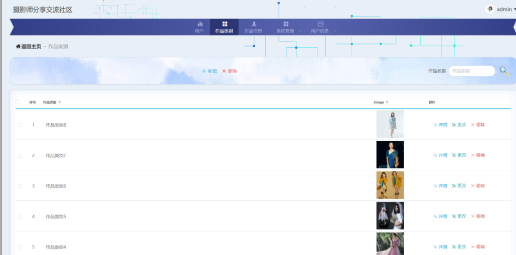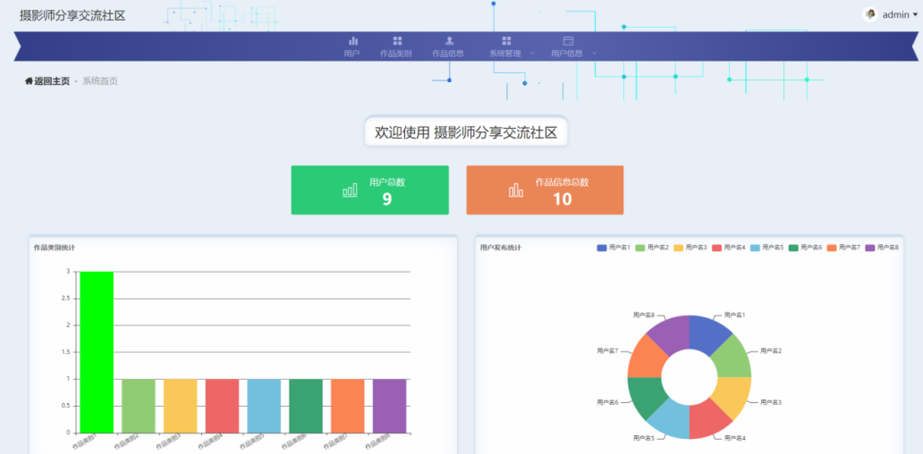 Compared with other systems of the same type, the photographer sharing communication community has great advantages in many aspects such as fluency, endurance and so on. This means that the design of the photographer sharing and communication community has a better ability than other systems, and can more efficiently complete the management function of the latest user information, work categories, work information, etc.
