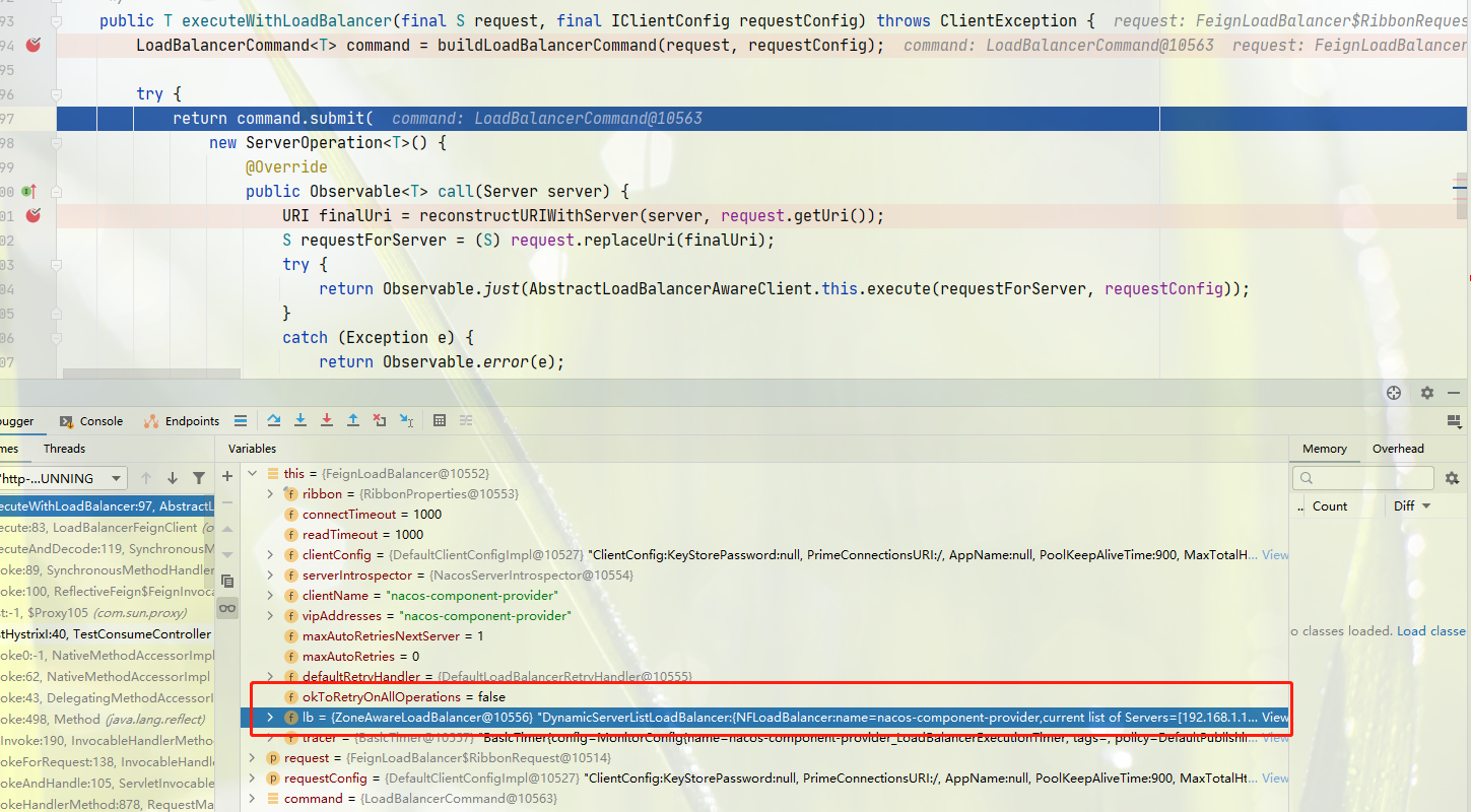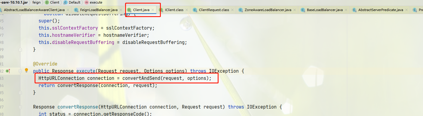 使用 LoadBalancerFeignClient执行 request 请求,此时请求已经是一个完整的请求,调用LoadBalancerFeignClient#execute 执行请求的替换和请求调用。
