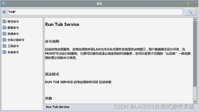 如果你在Laxcus桌面上使用边缘服务,这些命令可用桌面帮助查阅。