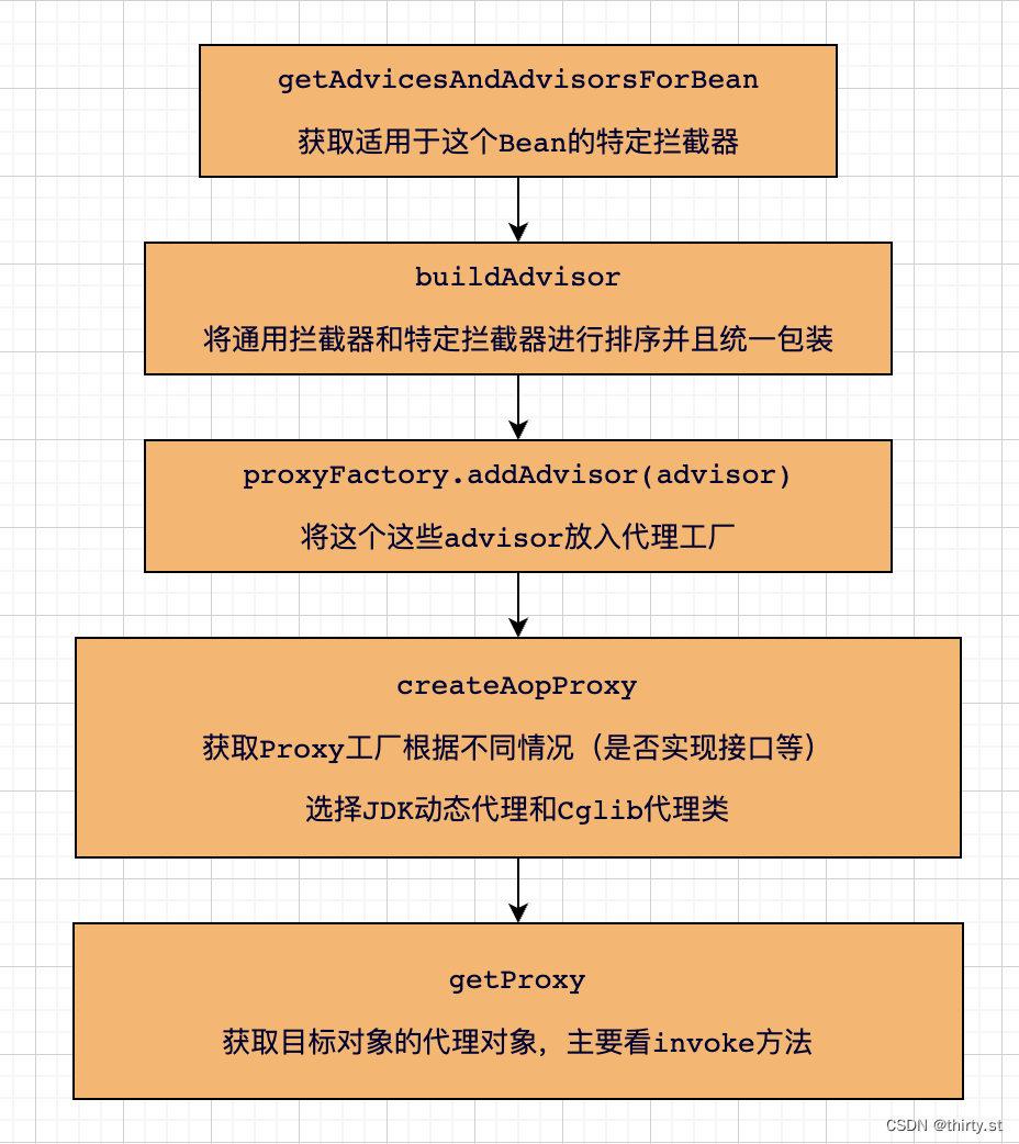因此,在正常情况下,aop应该在Bean初始化的时候被调用。其中代理主要是在after方法中实现的,主要的方法是wrapIfNecessary方法