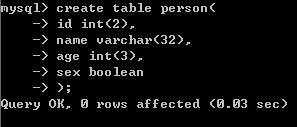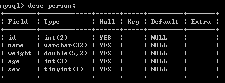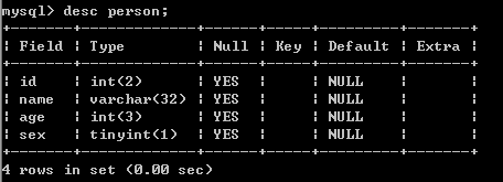 #字段的名字(age) 数据类型(tinyint类型)默认是4位
