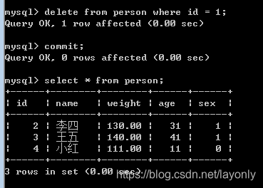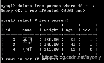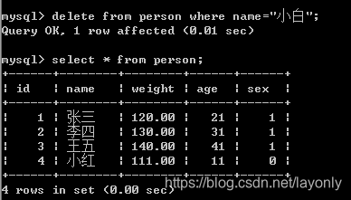 delete from person where name="小白";