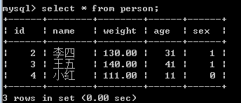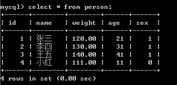 通过 select * from person(表名)查看数据