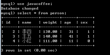 删除库 (drop database javacoffee),删除表(drop table person)
