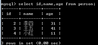 select id,name,age from person;