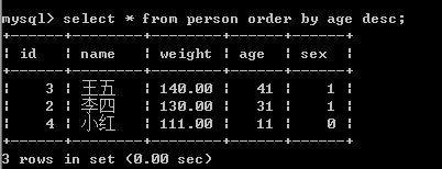 找出体重最大的人的信息,先按照体重降序排,再用limit取第一行数据就是体重最大的(反之升序的话就取得是最小的咯)
