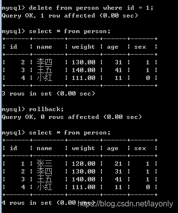 可以看到没有实际上没有删除,接着我们可以通过事务回滚,进行一下撤回操作
