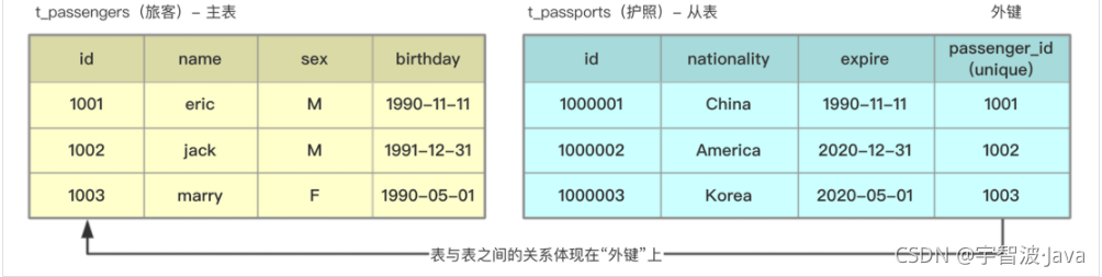 OneToOne:一对一关系(Passenger --- Passport):一个旅客只有一个护照,一个护照只对应一个旅客