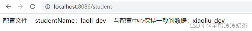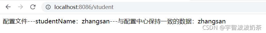 return "配置文件---studentName:"+name +"---与配置中心保持一致的数据:"