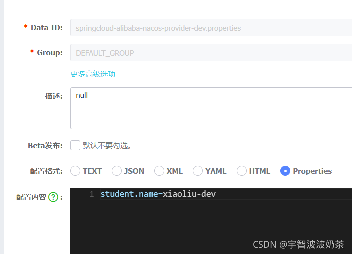 在nacos服务端创建配置文件