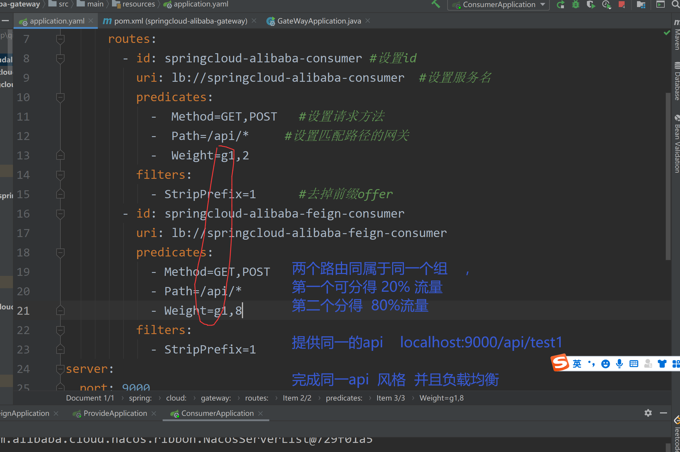 uri: lb://springcloud-alibaba-cursom #设置服务名 注意设置成自己的