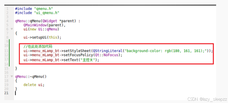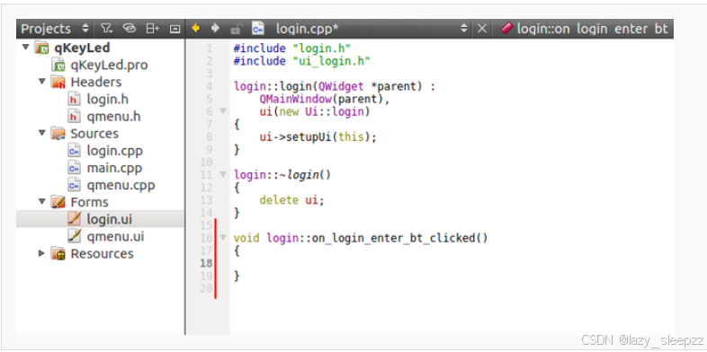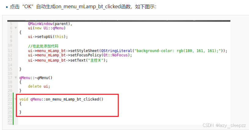这里是给按钮添加槽函数,即点击按钮后,需要执行的逻辑
