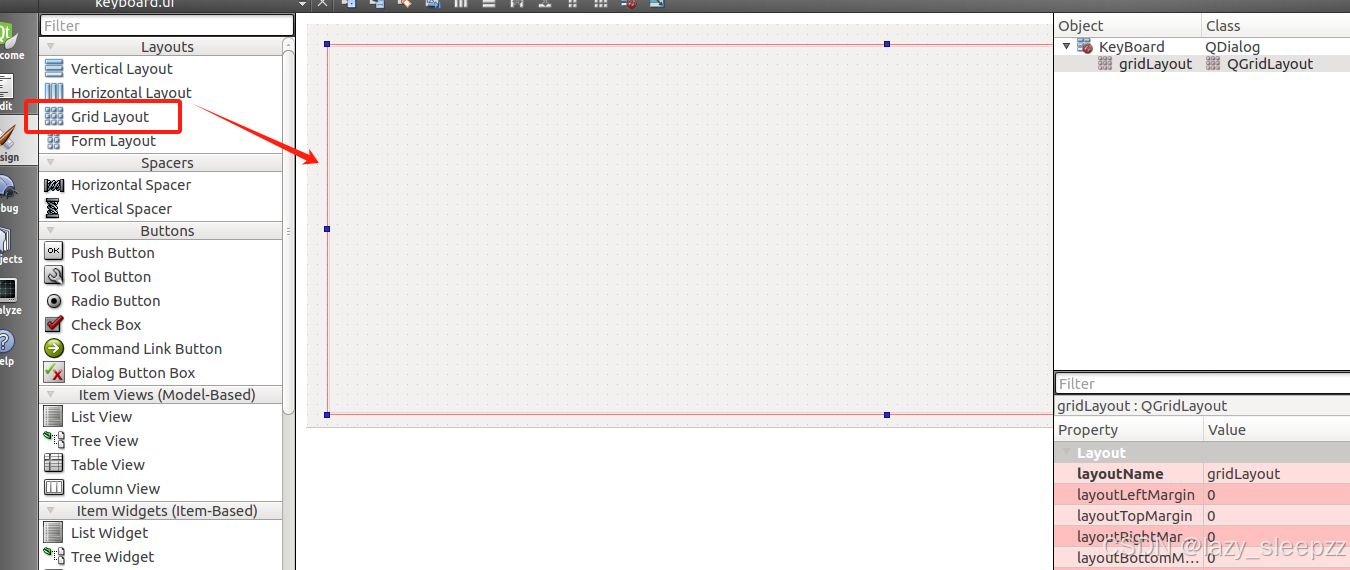 首先创建这么个Grid layout,设置ui界面的大小,再把这个layout布局放上去框住。