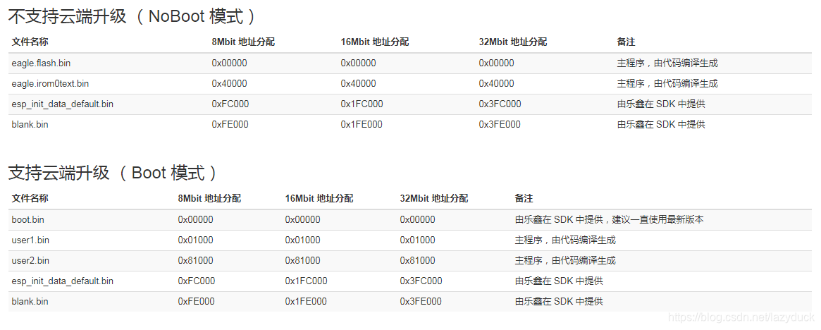 这里说一下,编译器生成的bin文件,根据Makefile里面的配置不同,分为两种:一种是不支持云端升级的,一种是支持云端升级的。Makefile如何配置,后面会讲,这一节主要说和下载相关的东西。