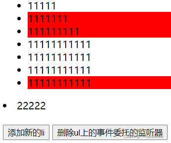 <button id="btn2">删除ul上的事件委托的监听器</button>