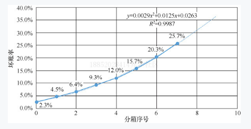 以分箱序号作横轴,逾期率为纵轴,绘制坏账率拟合曲线。上图中第8、9箱旧模型拒绝的客户,而换入客群是新模型从这些里面挑出较好的客群,因此应该是对第8箱且靠近第7箱的这部分客群进行预估(前提是旧模型对拒绝客户仍有一定排序性)。
