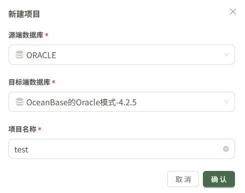 注册/登录后,新建一个 Oracle 到 OceanBase 的转换项目:test。