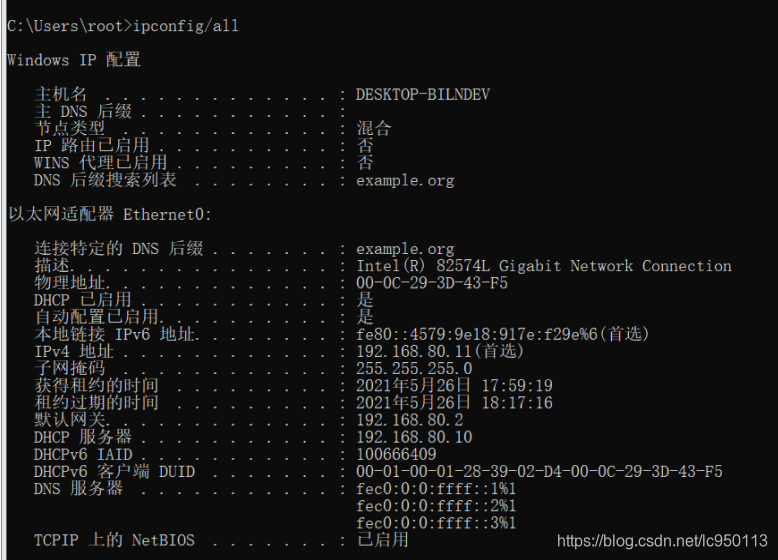 ⑧让window10 自动获取IP地址 验证是否成功