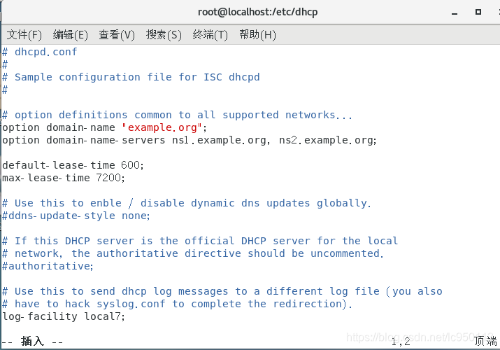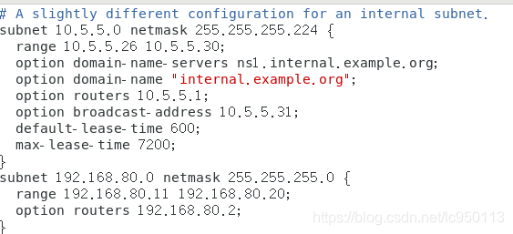 ②改配置文件 vim /etc/dchp/dchpd.conf