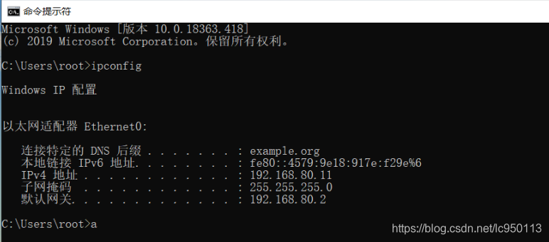 ipconfig //查看IP信息