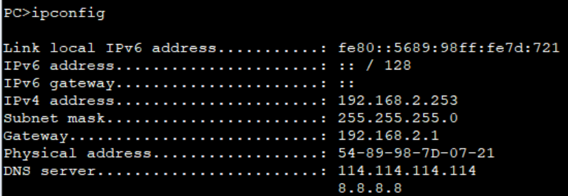 [Huawei-GigabitEthernet0/0/0.1]ip add 192.168.2.1 24