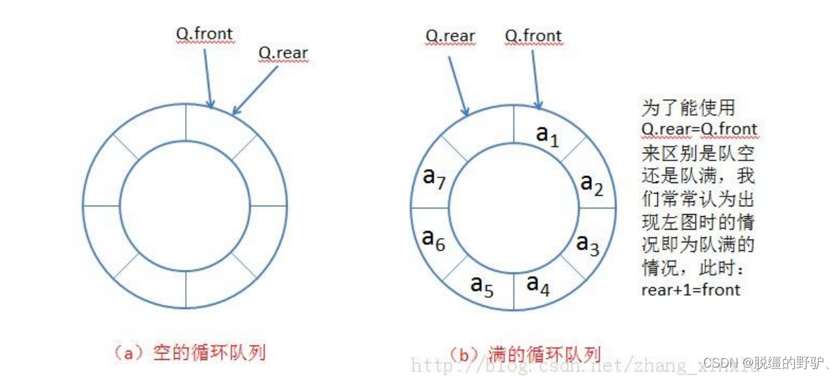 //下面两种情况时,循环队列均已满、