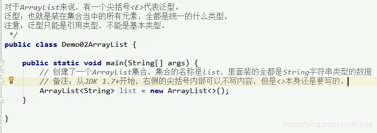注意方法参数里的参数类型要和创建的ArrayList集合的泛型一致,比如