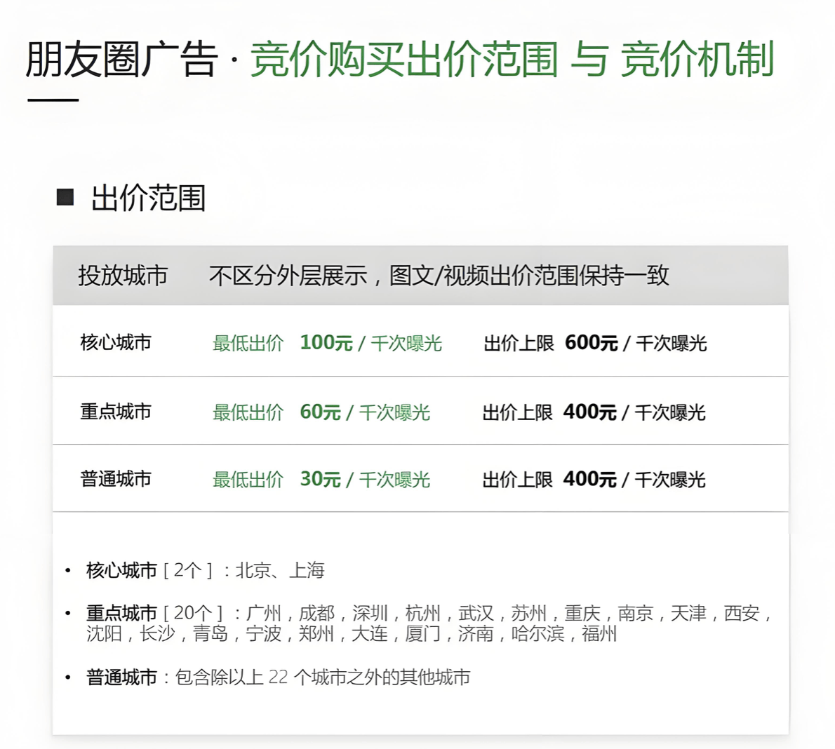 朋友圈广告收费方式以及价格是大家备受关注的点,想在朋友圈投放一次广告不知道自己需要出多少预算以及费用,介绍一下朋友圈广告的收费方式以及计费,主要是以曝光计费的,城市不同收费价格不同。