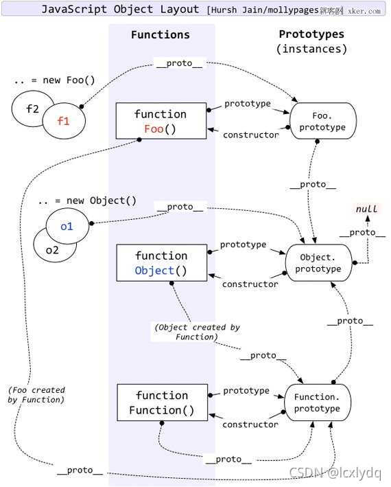Object构造函数也是如此,不过Object的原型对象的__proto__指向null,而Function()有一点区别,它的__proto__就指向他自身的原型对象,
