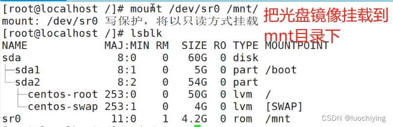 ①搭建本地仓库需要的元信息和安装包在本地光盘镜像中,元信息和安装包的对应目录名称分别为repodate和packages。我们首先对光盘镜像进行挂载。