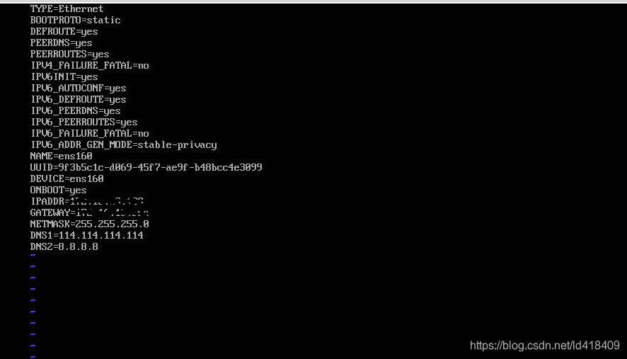 #vi /etc/sysconfig/network-scripts/ifcfg-ens160
