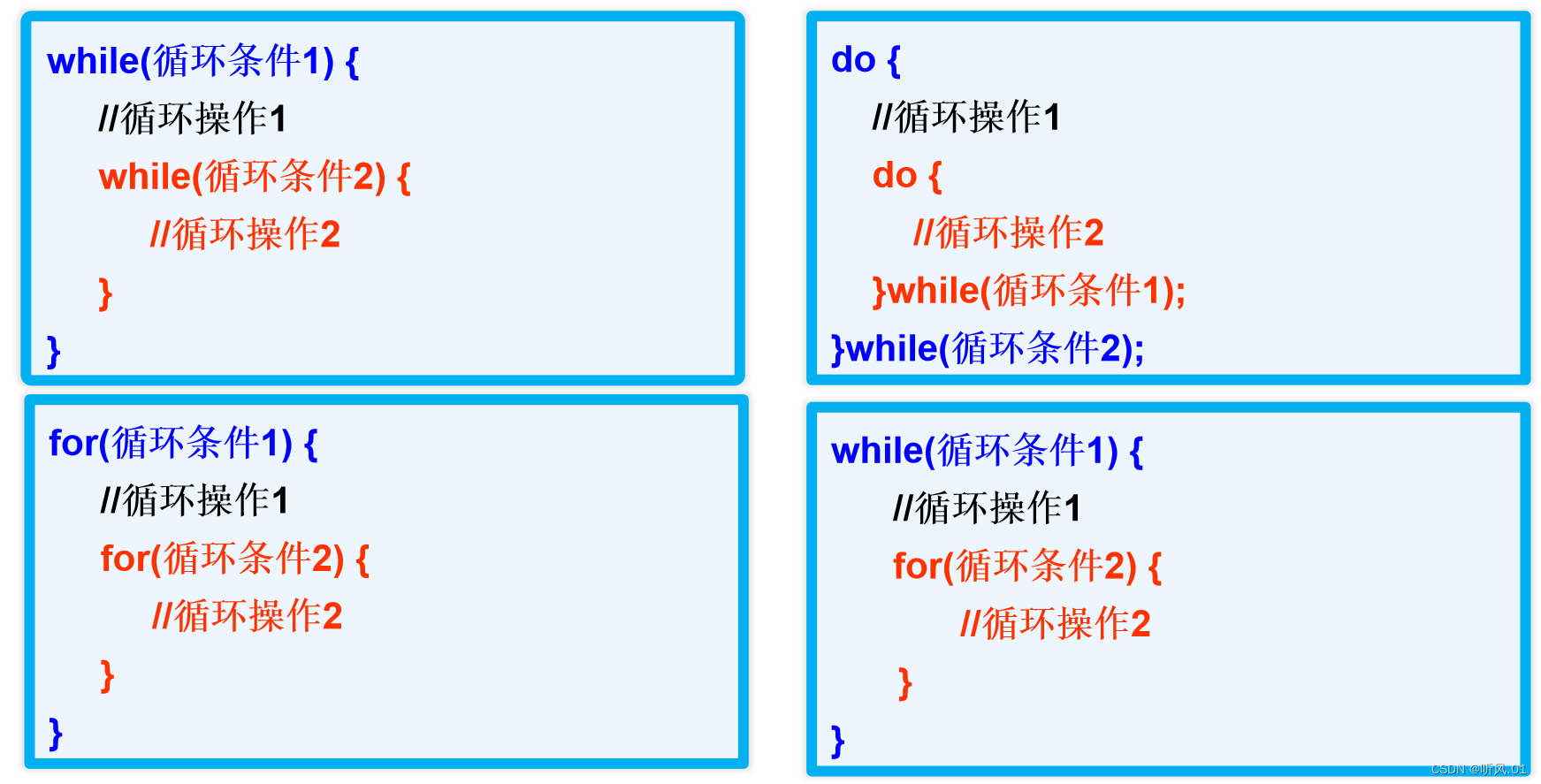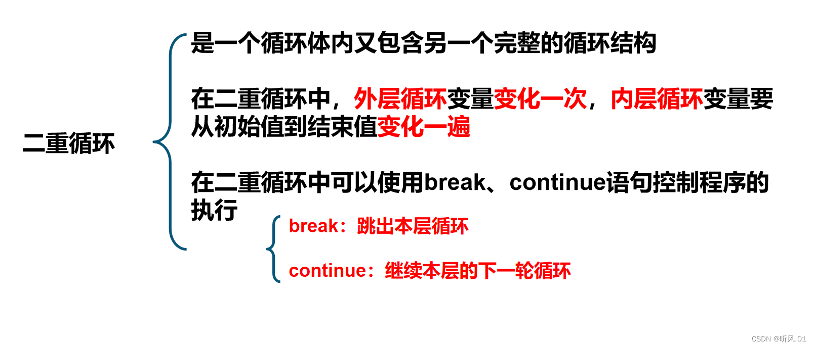 二重循环就是一个循环体内又包含另一个完整的循环结构。