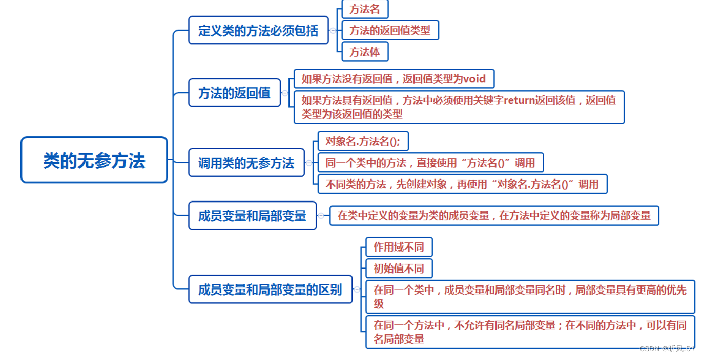 本文介绍了Java中类的无参方法和带参方法。无参方法包括void类型的返回值和方法调用方式,而带参方法则涉及参数的定义与调用规则。同时,文章讨论了成员变量与局部变量的作用域、初始值差异,并指出在同名情况下,局部变量具有更高优先级。最后,文章提到了基本类型与引用类型作为参数传递时的区别。