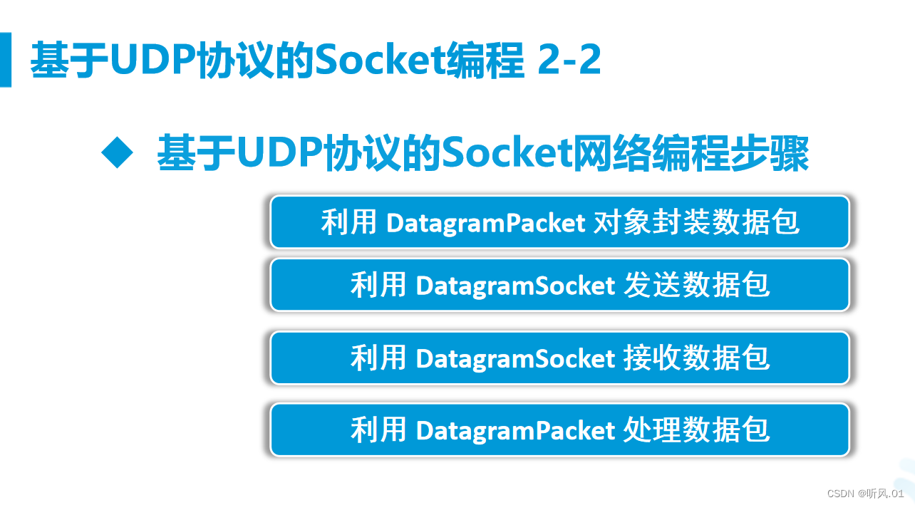 建立连接>打开Socket关联的输入输出流>数据流中读写信息>关闭所有的数据流和Socket