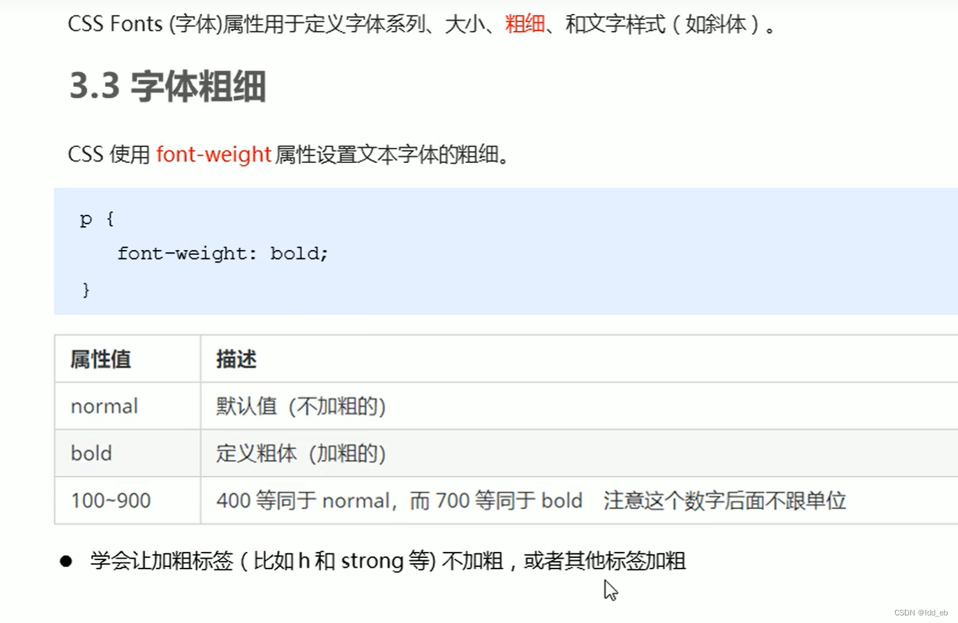三.font-weight(字体粗细)(无单位)(400是默认字体)(标题需要单独指出字体粗细)