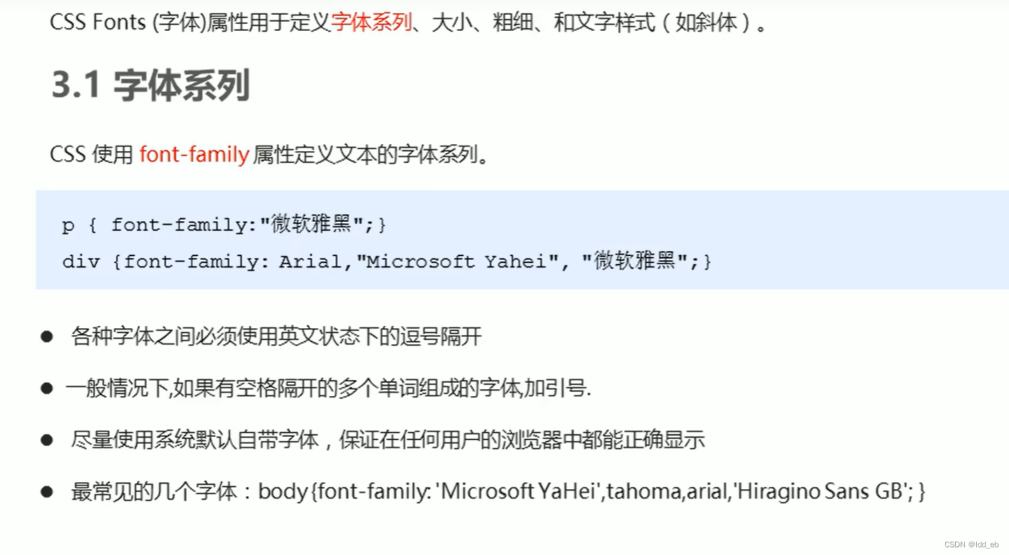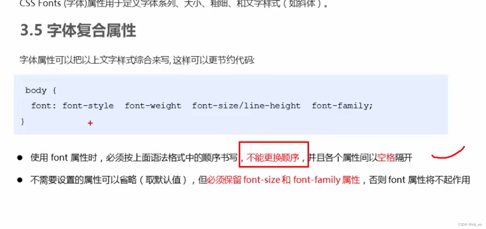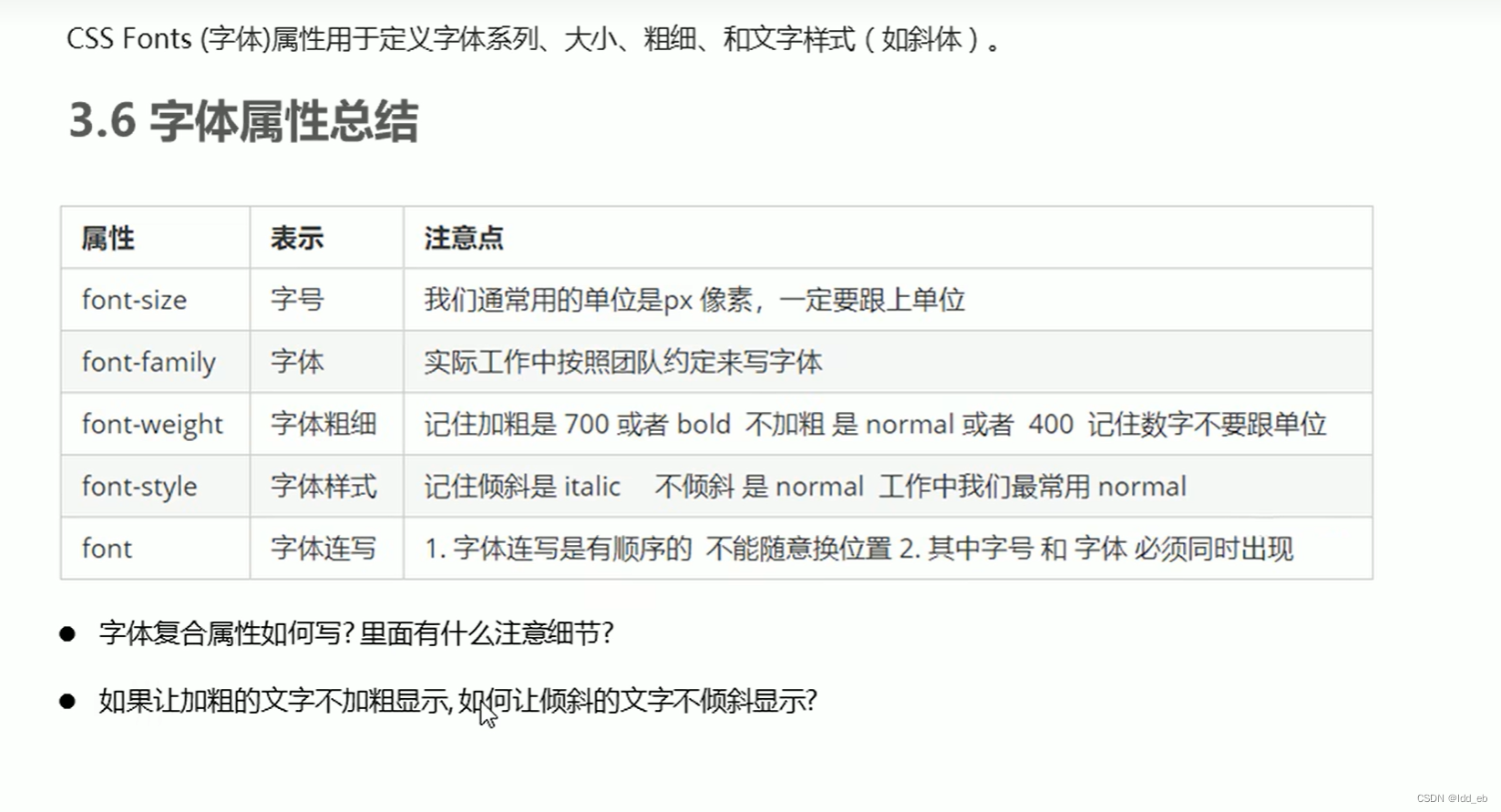 本文介绍了CSS中关于字体设置的关键属性,包括字体系列的表示方法、字体大小的单位、字体粗细的不同级别、以及字体样式的概念。重点强调了复合属性的使用规则,即必须按照`size`和`family`的顺序来设置。