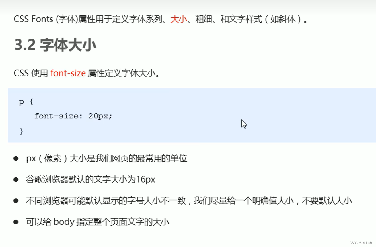 二.font-size(字体大小)(有单位px)(默认字体16px)