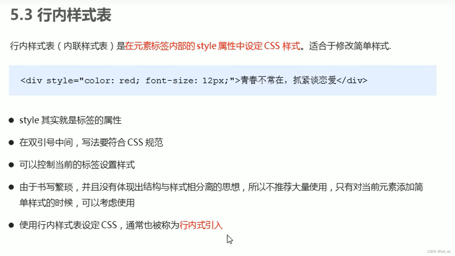 一.行内样式表(行内式)(用在标签内部)(用于修改一些简单的)