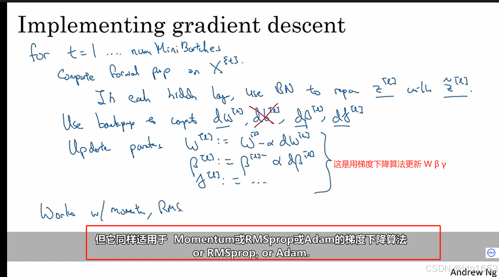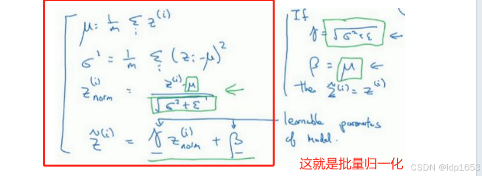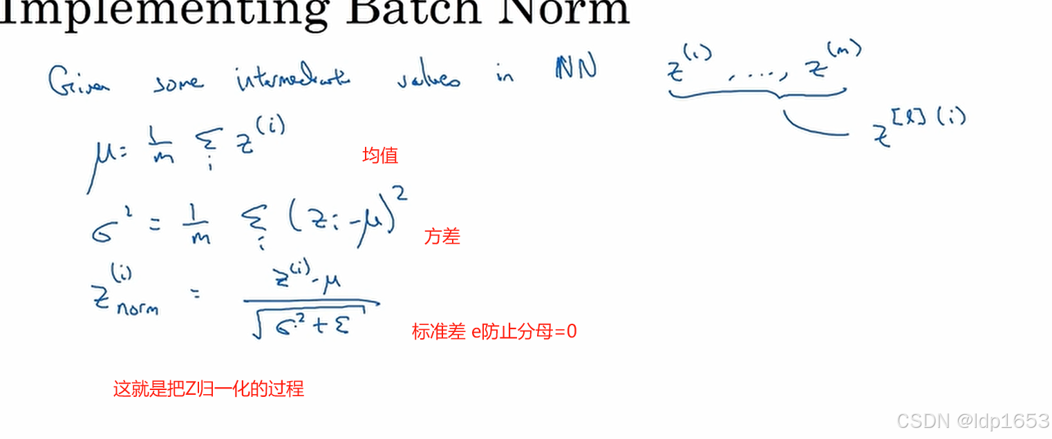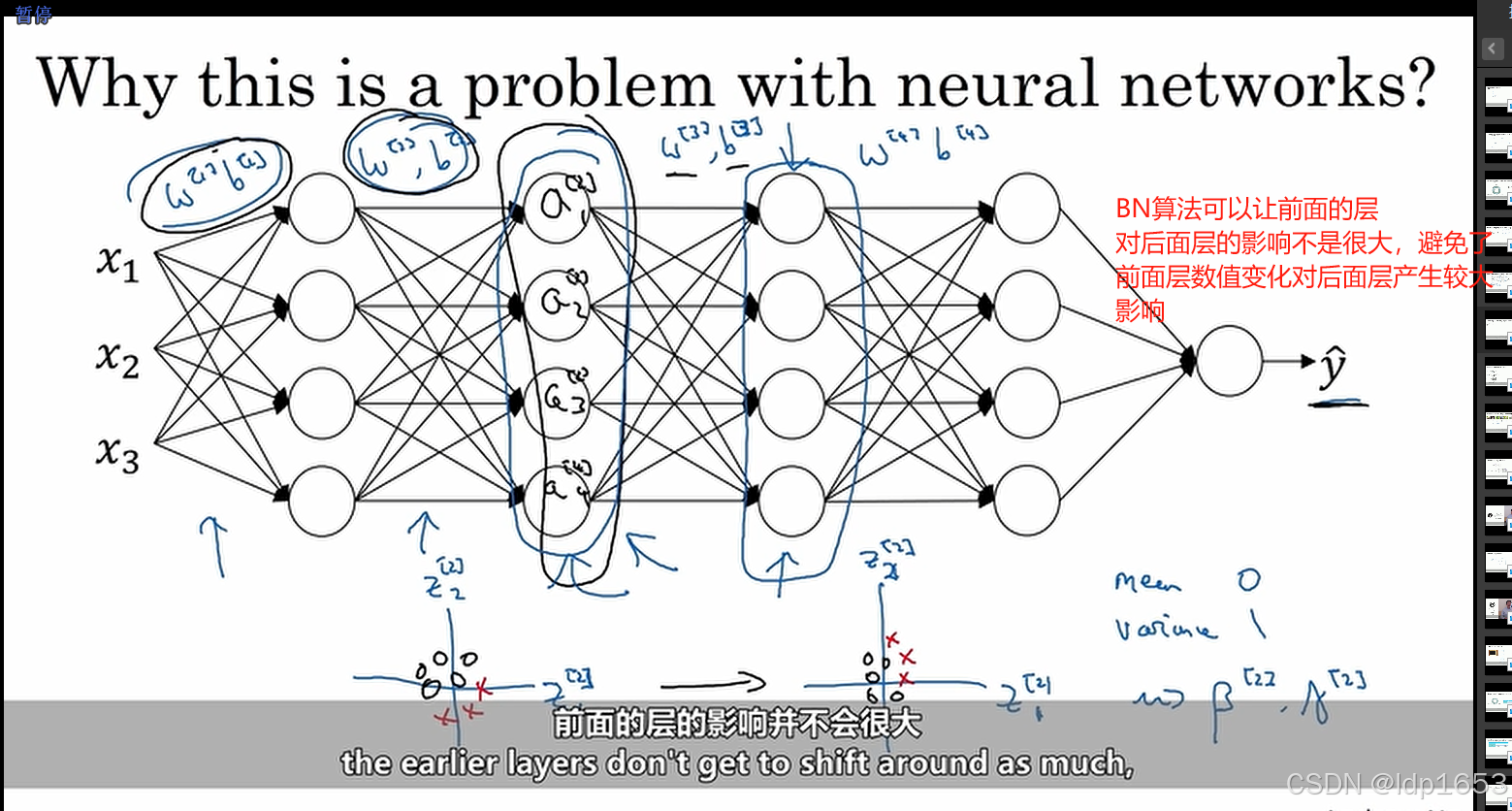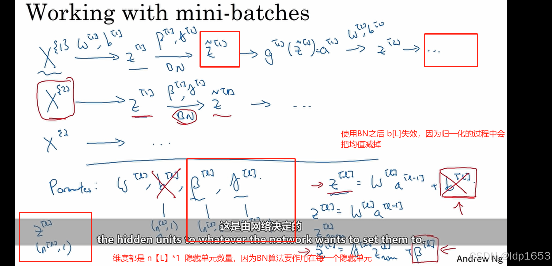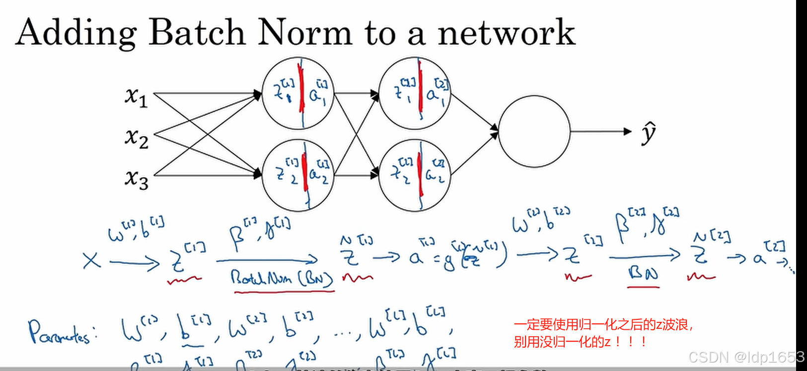 最终达到的效果就是通过 𝛾和β 来控制隐藏层的方差和标准差(自由控制 让z(i)是任何值)3.5 把batch norm拟合到神经网络