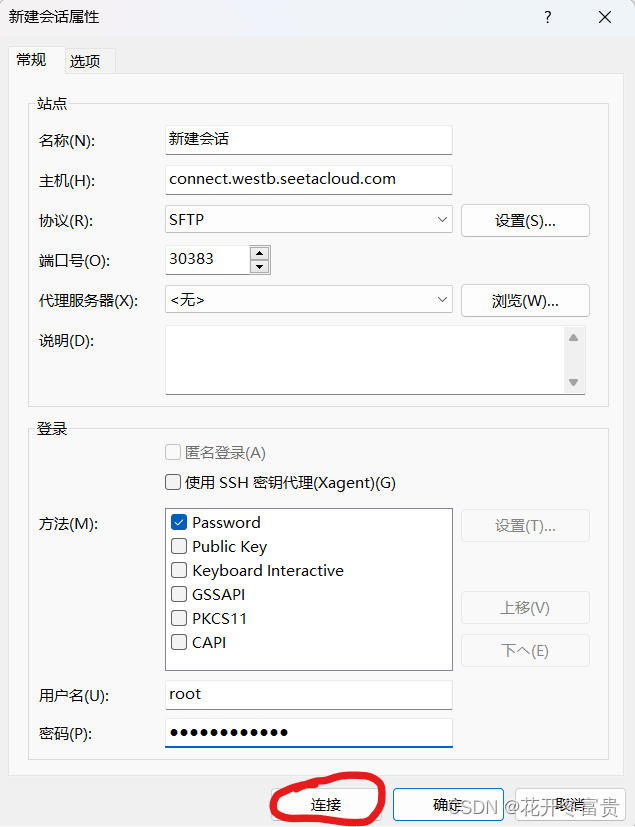 主机:connect.westb.seetacloud.com(为@号后面的内容)
