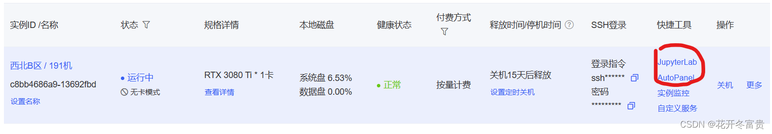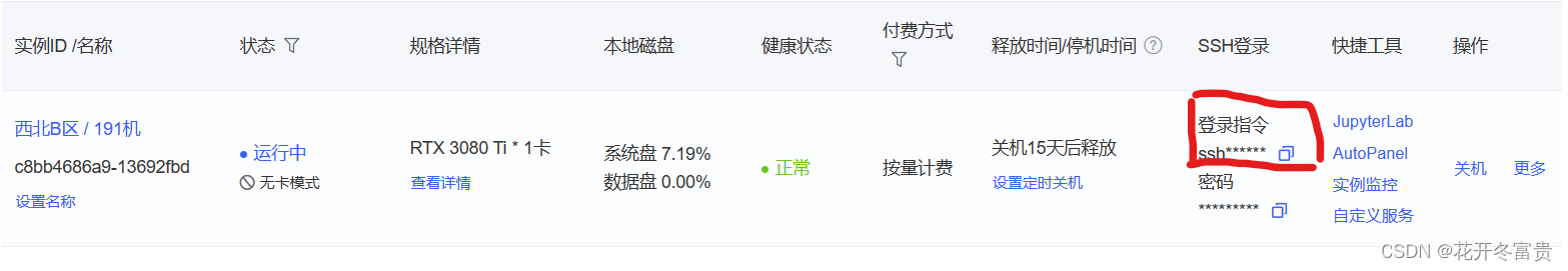 可以得到ssh -p 30383 root@connect.westb.seetacloud.com