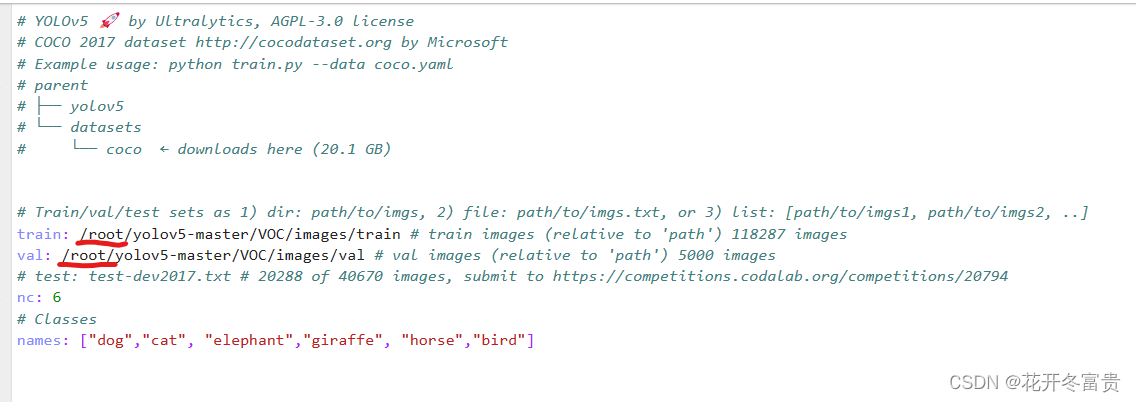 然后打开数据集配置文件,修改目录,根据自己的实际情况修改