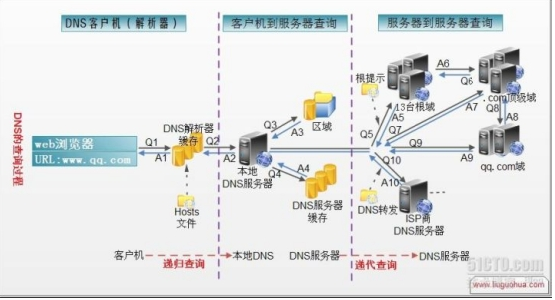 1.浏览器输入网址www.qq.com,现在浏览器中查找DNS缓存,如果找到直接返回ip。
