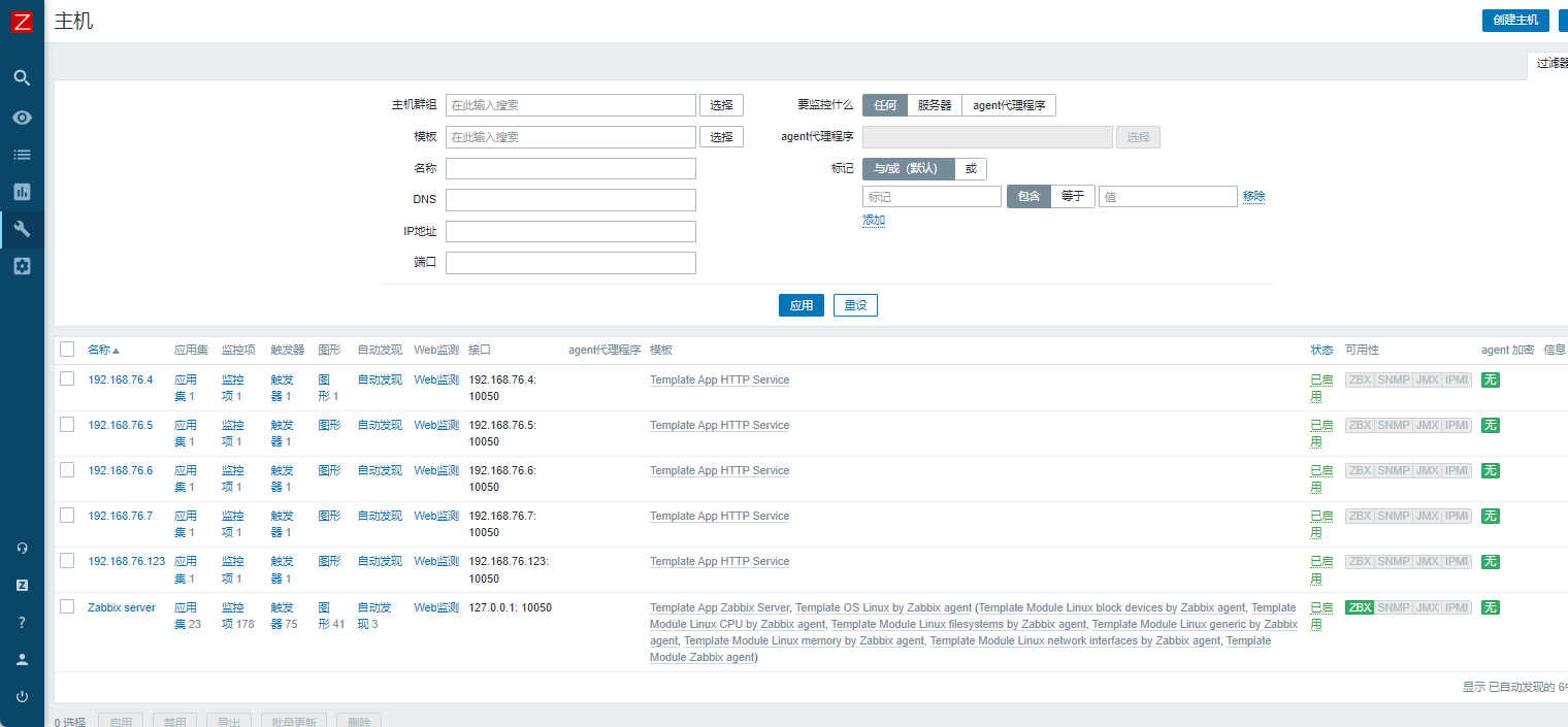 然后重启服务systemctl start zabbix-agent.service查看发现主机