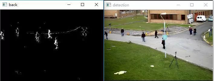 bs = cv2.createBackgroundSubtractorKNN(detectShadows=True) # 背景减除器,设置阴影检测 bs.setHistory(history)