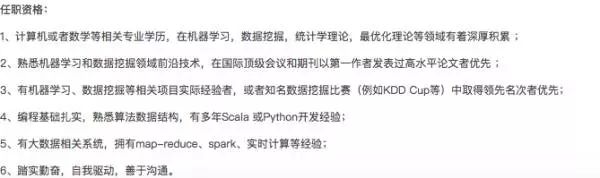 在机器学习、数据挖掘等相关项目实际经验者或者知名数据挖掘比赛(例如KDD Cup等)中取得领先名次者优先