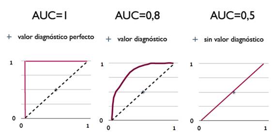 AUC = 1,是完美分类器,采用这个预测模型时,存在至少一个阈值能得出完美预测。绝大多数预测的场合,不存在完美分类器。