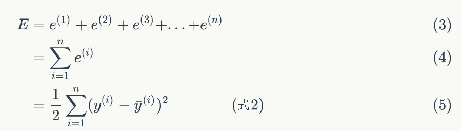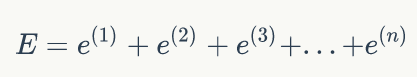 训练数据中会有很多样本,比如N个,我们可以用训练数据中所有样本的误差的和,来表示模型的误差E,也就是